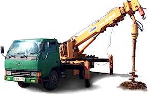 На Зил 131 устанавливаются различные буровые машины. Мы используем японские ямобуры, что позволяет осуществлять бурение отверстий различного Pin-Up и глубины. Максимальная глубина скважины составляет 12 м. Максимальная длина стрелы - 10 м.